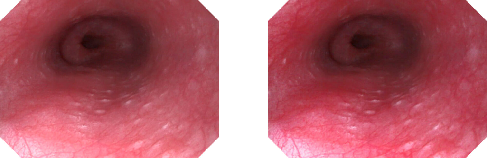 利用了血红蛋白在不同波长吸收下系数不同的原理,设计的一种光学域滤波和数字域滤波结合的染色技术,既保证了图像亮度,又可增强黏膜血管的对比度,充分凸显早期病变的细微结构变化,为临床疾病的观察诊断提供更丰富的参考信息。
